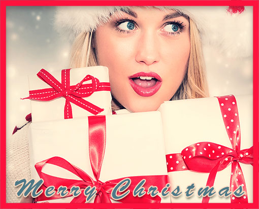 Beautiful woman with lots of presents - Merry Christmas. |