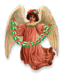 Christmas angel with garland and holly. |