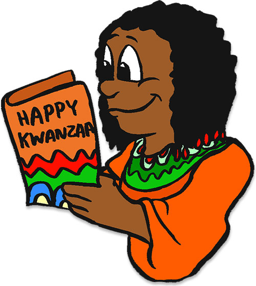 Happy Kwanzaa in red and green with yellow backlight on white. |